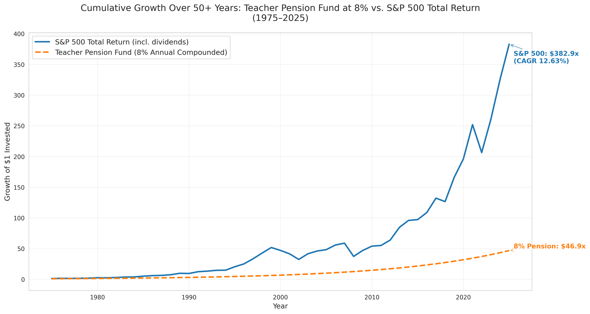 Benefits are heavily backloaded: little value accrues early in a career, with most wealth spiking only after 20–30 years tied to final average salary and service years. Teachers leaving before vesting (often 5–10 years) get back only their contributions, sometimes with minimal interest — no employer match.